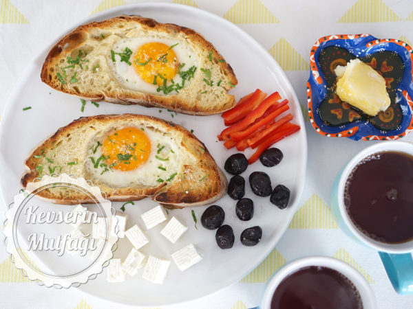 Kahvaltı sofraları için pratik, lezzetli ve hoş görünümlü bir tarifim hazırladım. Özellikle kahvaltı etmek için aceleniz varsa çay demlenene kadar hazırlanabilecek bir şeyler lazımsa ilk aklınıza gelen tariflerden biri bu olmalı bence. Kenarlarından kızarmış ekmeği koparıp yumurta sarısına bana bana yemesi de ayrı keyif elbette.