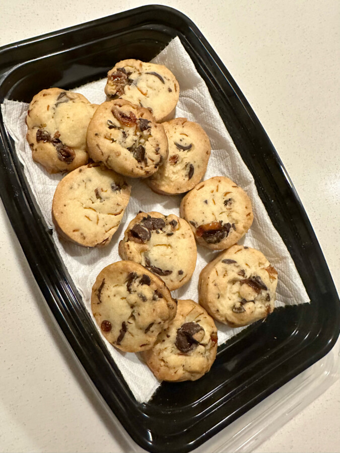 Kıvam ve lezzet olarak bizim un kurabiyesi ile büyük benzerlik gösterirler. Orijinalinde bizim un kurabiyesi gibi sade şekilde yapılsalar da benim yaptığım gibi farklı malzemelerle farklı aromalarda yapılmaları da mümkündür. Ben sade kurabiyeye çok bayılmadığım ve hazır fırsat varken kurabiyeleri farklı şekillerde aromalandırma yöntemlerini göstermek için aynı hamurla iki farklı çeşit kurabiye tarifi paylaşmak istedim. Ama orijinal, sade halini yapmak isterseniz portakal kabuğu, antep fıstığı, çikolata ve fındık eklemeden, yalnızca un, pudra şekeri ve tereyağı kullanarak sade şekilde yapabilir ve yine aynı şekilde şekillendirip dilimleyerek pişirebilirsiniz.
