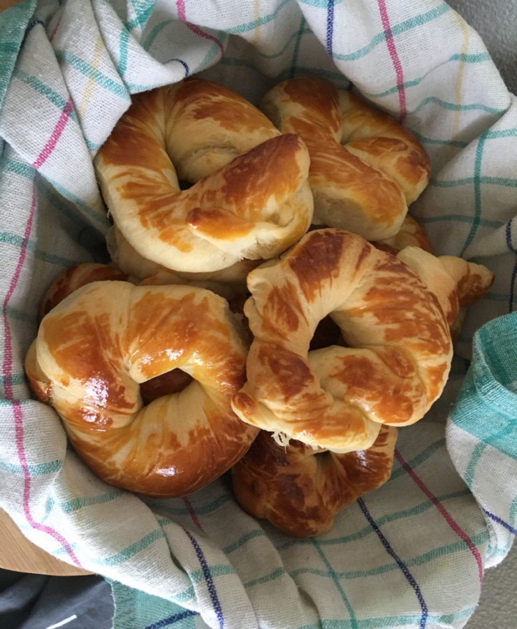 - Çubuk şekline gelen hamuru düğüm yapıp düğümün bir ucunu altına kıvırın,