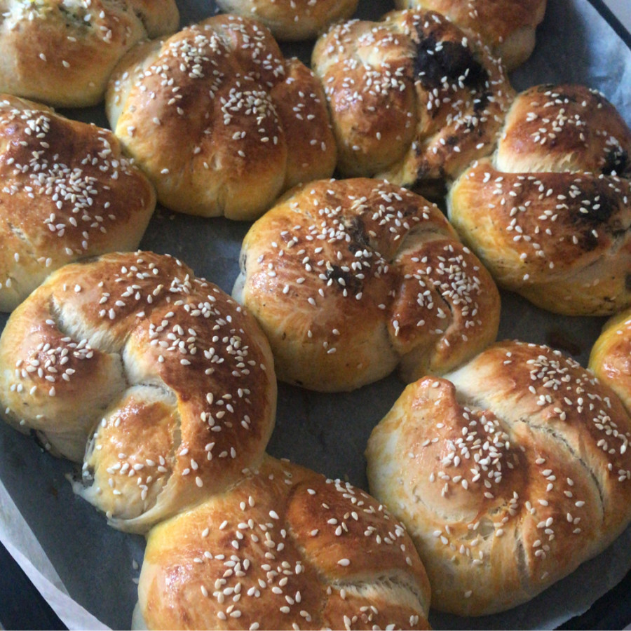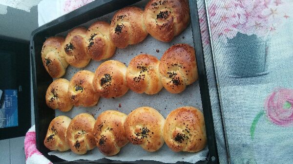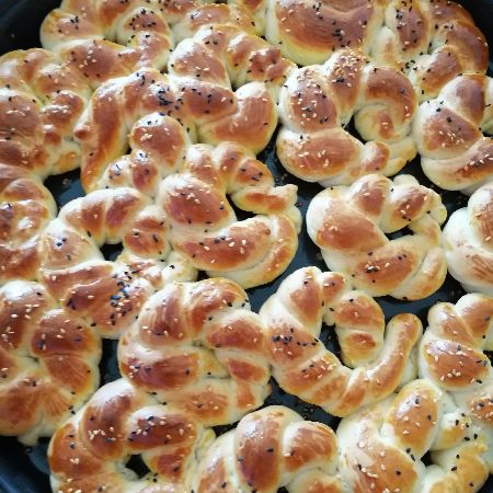 - Açmaların üzerine sürüp susam ve çörek otu serpin,
