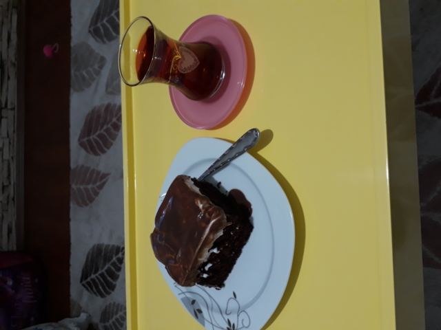 - Keki fırından çıkarıp 10 dk beklettikten sonra üzerine 1 su bardağı süt gezdirin,