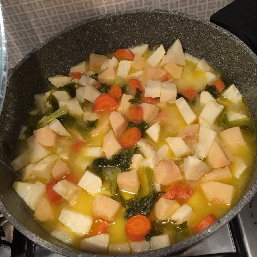 - Soğanların üzerine sırasıyla havuçları ve kerevizleri yerleştirip kapağını kapatın,