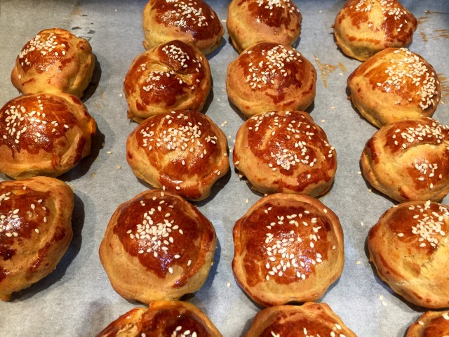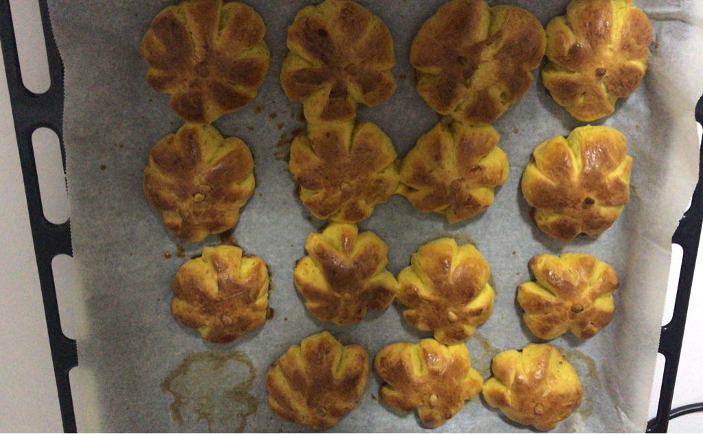 - Yumurta sarısını bir yemek kaşığı suyla karıştırıp üzerlerine sürün,