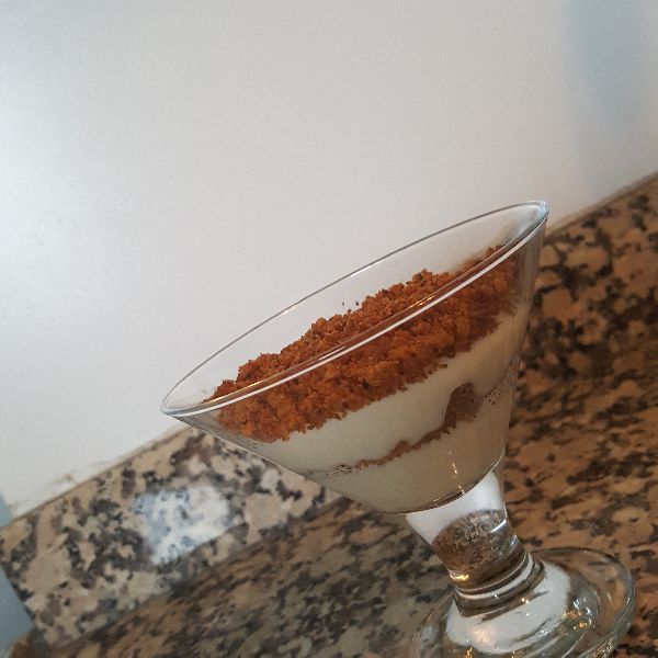 - Muhallebinin yarısını kuplarınızın dibine paylaştırın,