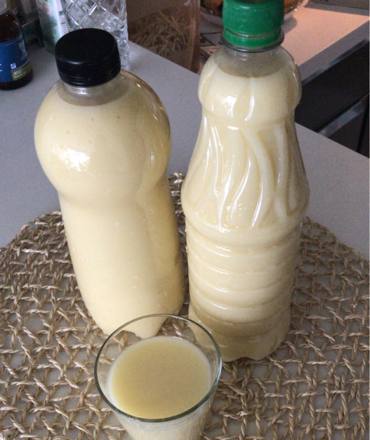 - Üçüncü günün sonunda çok ince delikli, plastik bir süzgeçle süzüp (yaklaşık 2-3 yemek kaşığı posa çıkacak, posayı yiyebilirsiniz) bir şişeye alın,