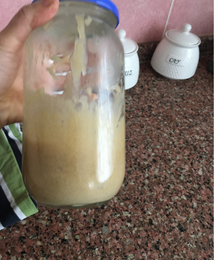 - Üçüncü günün sonunda çok ince delikli, plastik bir süzgeçle süzüp (yaklaşık 2-3 yemek kaşığı posa çıkacak, posayı yiyebilirsiniz) bir şişeye alın,