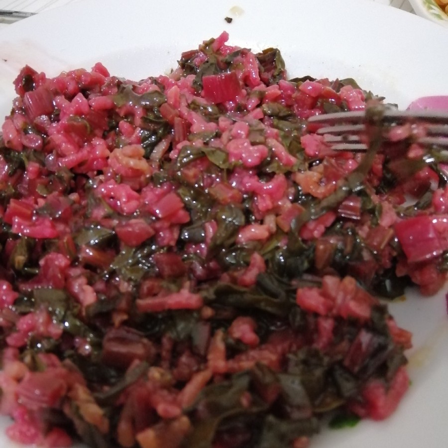 - İnce ince kıydığınız pancar yapraklarını ekleyip karıştırın,
