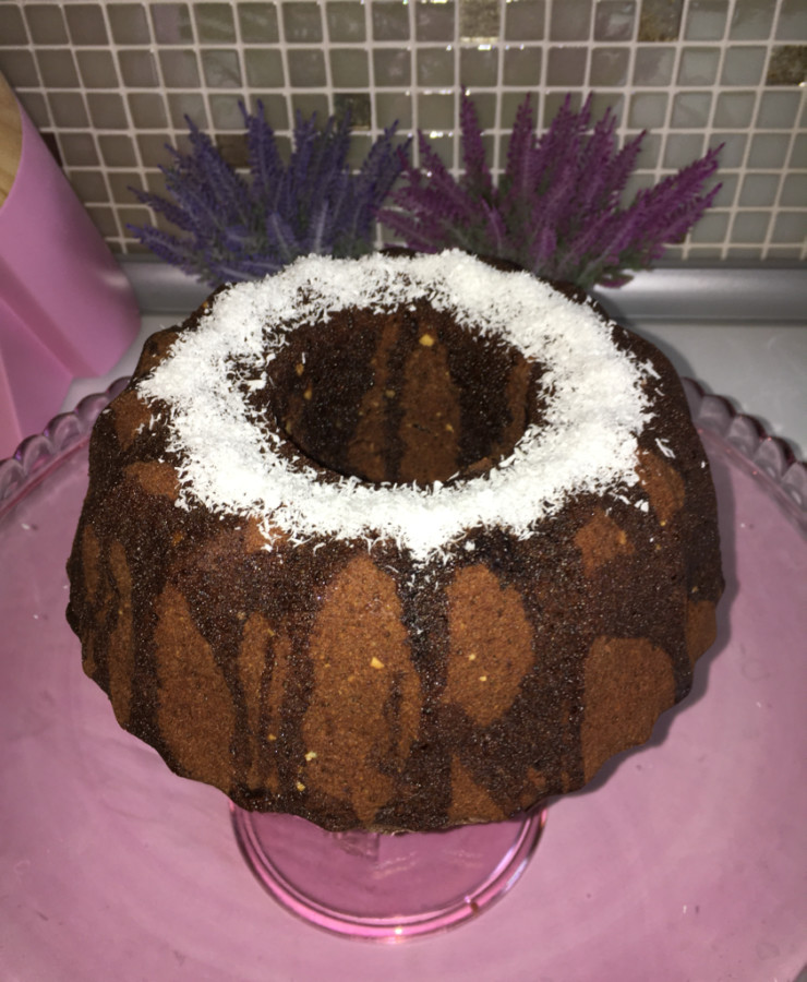 - Kek bu karışımı çektikten sonra hindistan ceviziyle süslenerek servis yapın.