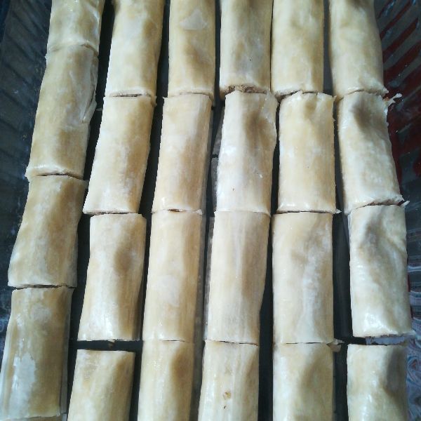 - Yufkaların tam ortasına geniş tarafından bir şerit halinde bolca ceviz koyun,