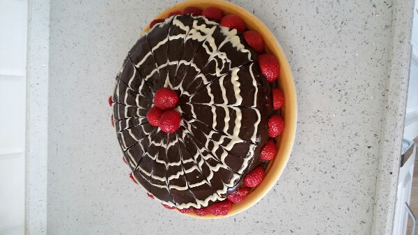 - Beyaz çikolatanın üzerine frambuaz dizin.