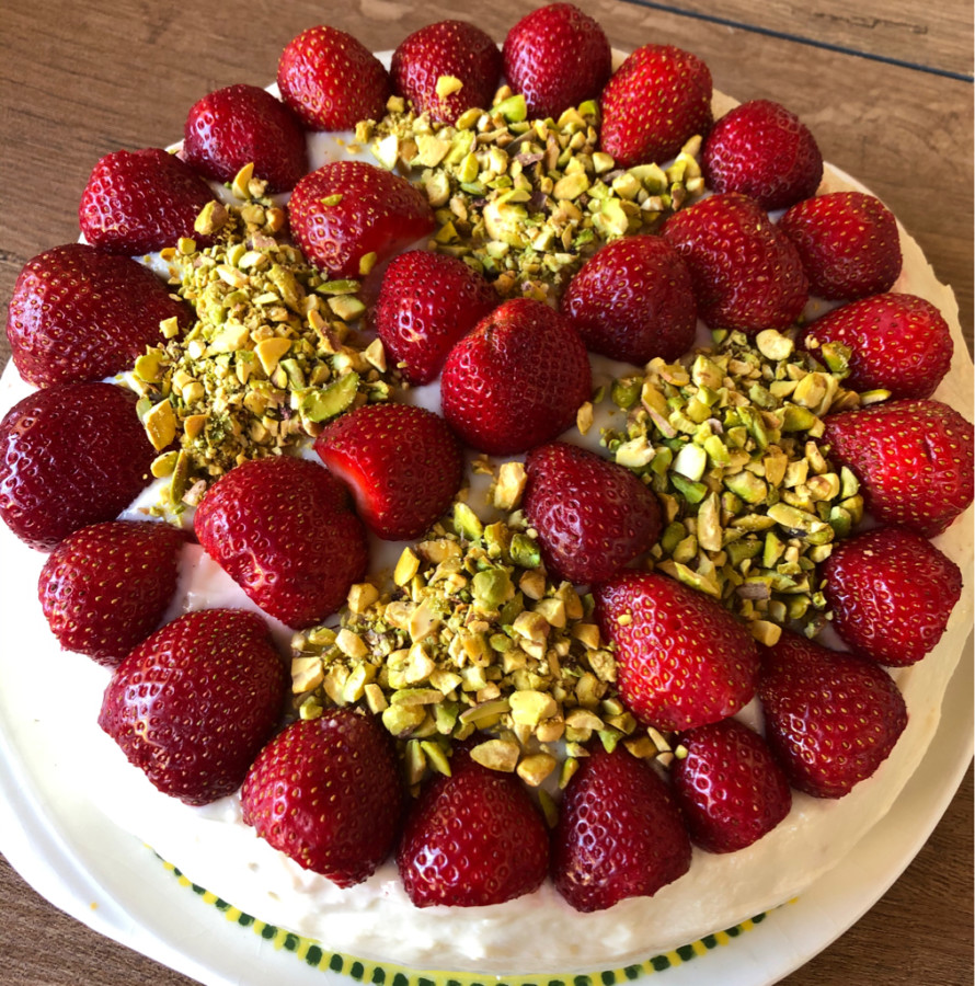 - Üzerine krema sürüp doğranmış çilek dizin,