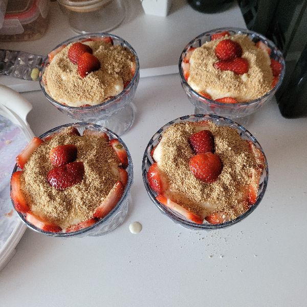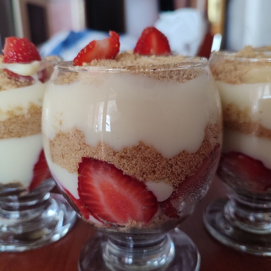 11. Üzerini bisküvi ve çilekle süsleyin.