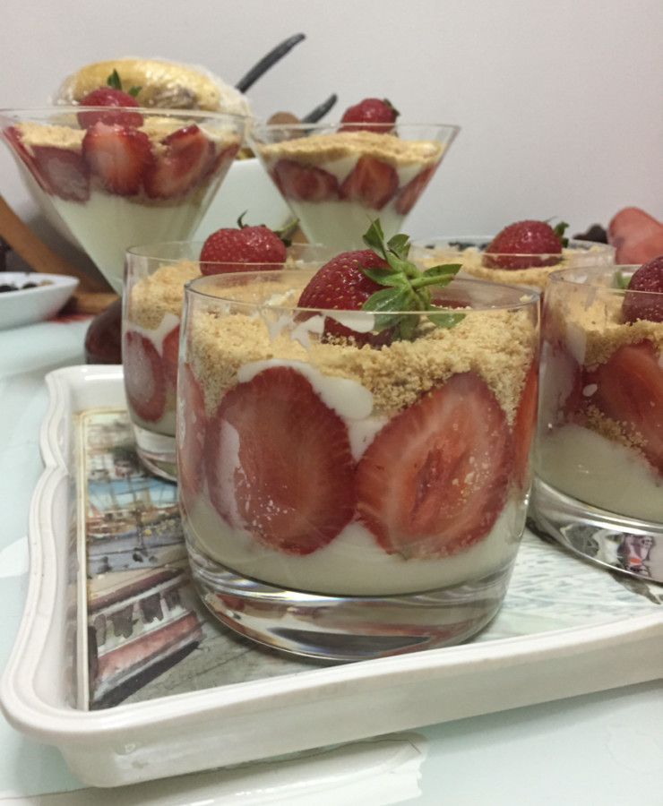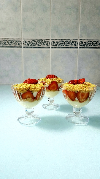 - Üzerini bisküvi ve çilekle süsleyin.
