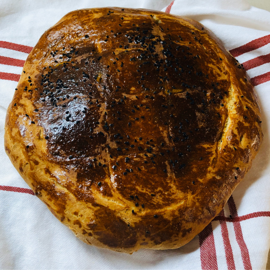 - Susam ve çörek otu serpip 190 derecede ısıtılmış fırında üzeri kızarana kadar pişirin.