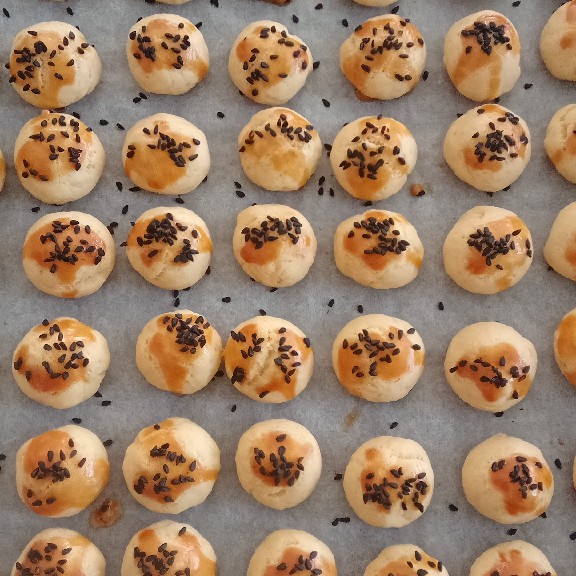 - Fındık büyüklüğünde yuvarlayarak yağlı kağıt serilmiş fırın tepsisine dizin,