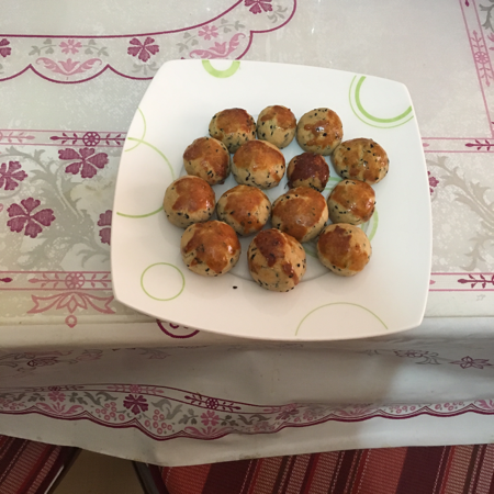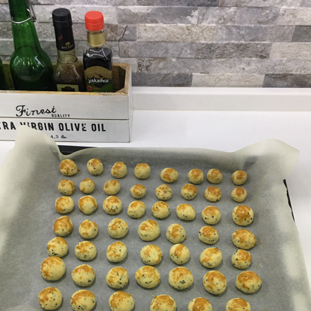 - Fındık büyüklüğünde yuvarlayarak yağlı kağıt serilmiş fırın tepsisine dizin,