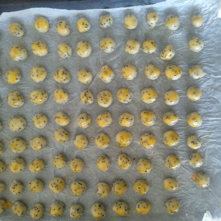 - Fındık büyüklüğünde yuvarlayarak yağlı kağıt serilmiş fırın tepsisine dizin,