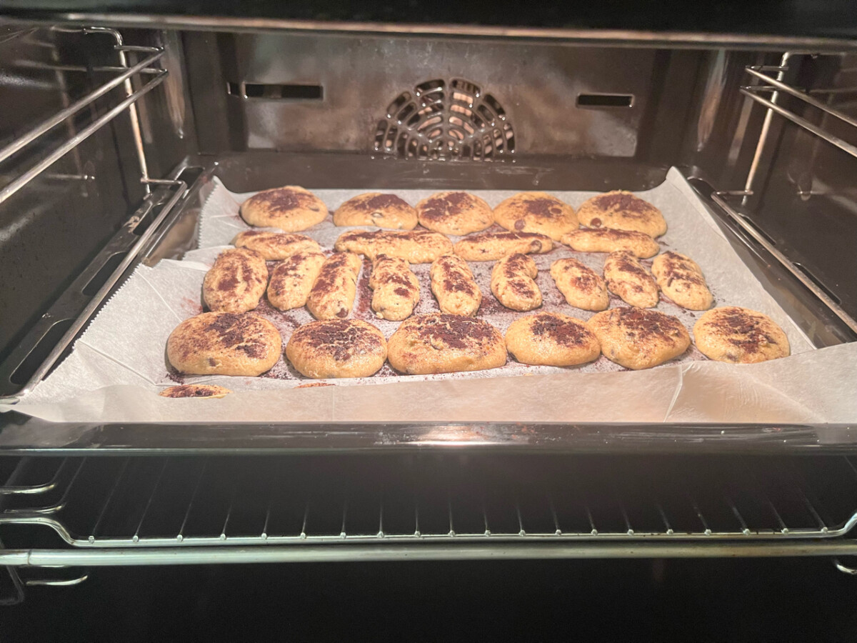 - Kalan damla çikolataları kurabiyelerin üzerlerine dizin,