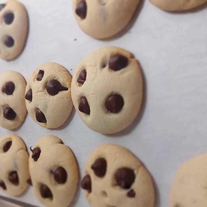 - Kalan damla çikolataları kurabiyelerin üzerlerine dizin,