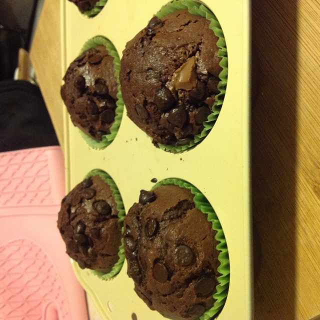 - Karışımı muffin kalıplarına üzerlerinde birer parmak boşluk kalacak şekilde paylaştırıp üzerlerine kalan damla çikolataları paylaştırın,