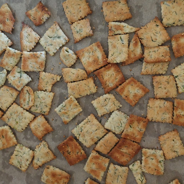 Geçtiğimiz günlerde uzun zamandır tuzlu bir atıştırmalık tarifi paylaşmadığımı farkettim. Hemen kolları sıvayıp mutfağa girdim ve ne zamandır yapılacaklar listemde duran bu dereotlu bisküvi tarifini hazırladım. İlk planıma göre yalnızca susamlı olacaktı. İşin içinde dereotu yoktu. Ama son anda işin içine biraz da yeşillik katsam, tarife hem renk ham de değişik bir aroma gelse ne güzel olur deyip biraz da dereotu doğradım.