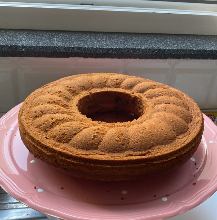 - Hamurun üçte birini yağladığınız 22 cm'lik kek kalıbına dökün,