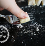 - Hamurdan mandalina büyüklüğünde bir top alıp yuvarlayın ve unladığınız tezgahta ileri geri yuvarlayarak uzun bir şerit haline getirin,