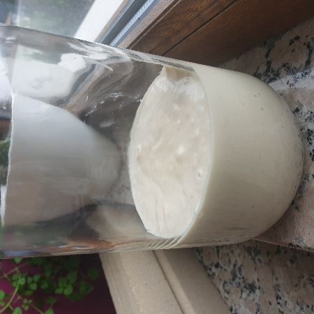 - 24 saat sonra karışımın üçte ikisini atıp kalan karışıma yarım su bardağı un ve yarım su bardağı su ekleyip pürüzsüz bir kıvam alana kadar karıştırın, üzerine bir örtü örtüp oda sıcaklığında güneş görmeyen bir dolaba kaldırın,