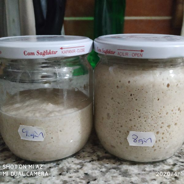 - 24 saat sonra karışımın üçte ikisini atıp kalan karışıma yarım su bardağı un ve yarım su bardağı su ekleyip pürüzsüz bir kıvam alana kadar karıştırın, üzerine bir örtü örtüp oda sıcaklığında güneş görmeyen bir dolaba kaldırın,