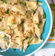 - Üzeri için 2 yemek kaşığı tereyağı, kıyılmış ceviz, kıyılmış maydanoz.