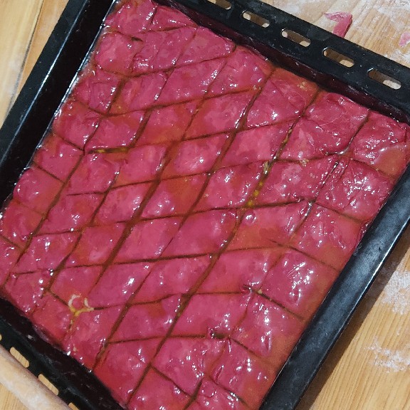 1. cansubkn: tarifinizde minnak bir değişiklik yapıp denedim 1 bardak su yerine pancar suyu koydum. birde şerbetini hibisküs ile yaptım. efsana oldu bayram için memlekete götürüp 2 gün sonra sebetini verdim kıyir kıyırdı. tabi serbetten 2 gün snra yumuşamaya başladı . fakat lezzetini herkes çok begendi