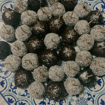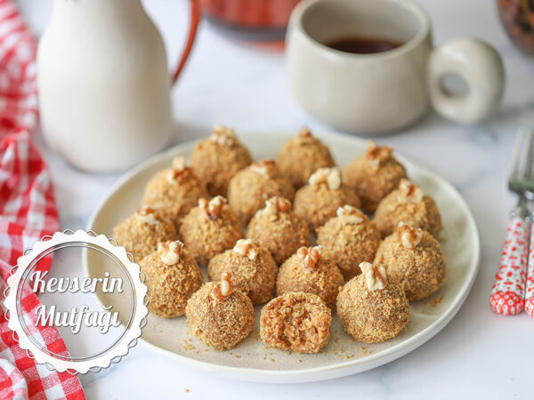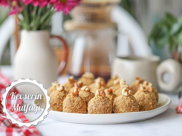 - Ceviz büyüklüğünde toplar yapıp kenara ayırdığınız çekilmiş bisküviye bulayın ve servis kabına alın,