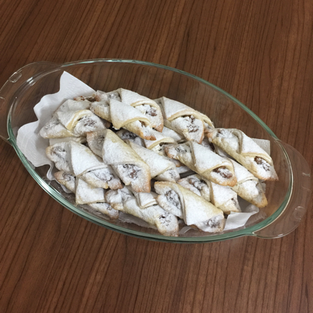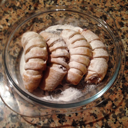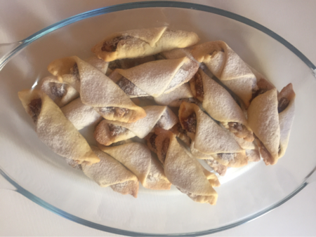 - Her bir parçanın geniş tarafında elmalı harçtan koyarak sigara böreği gibi sarın,
