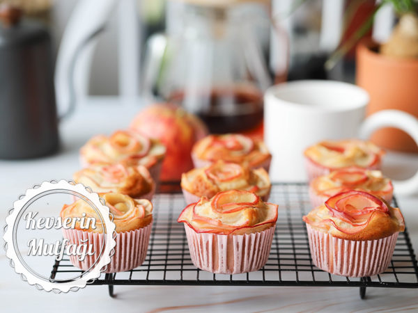 Lezzetinin yanı sıra görüntüsüyle de dikkat çeken bir tarif arıyorsanız bu tarif tam size göre. Gerçekten çok lezzetli oluyor muffinler. Ama görüntüden de anlaşılacağı üzere sunum lezzeti birazcık gölgede bırakıyor. Özellikle doğum günü kutlamalarında, çay davetlerinde sofrada hoş bir görüntü oluşturacaktır. Yapımı biraz el oyalayıcı olsa da zor değil. Tek ihtiyacınız olan çok çok keskin bir bıçak. Elma dilimlerini olabildiğince ince kesmeniz lazım gül şeklinin düzgün durması için. Bu da keskin bir bıçakla gayet kolay oluyor zaten. Bunun dışında muffinler standart tarçınlı kek tarifiyle yapılıyor, ekstra çabaya gerek yok.