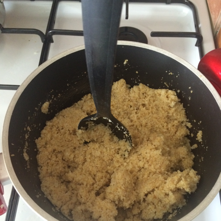 - Bulgur, irmik, su ve tuzu bir tencereye alıp çok kısık ateşte suyunu çekene kadar pişirin ve kapağı kapalı şekilde el dayanacak sıcaklığa gelmesini bekleyin,