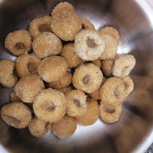 - Hamurdan küçük parçalar kopararak yuvarlayın ve parmağınızla ortasına bastırarak şekillendirin,