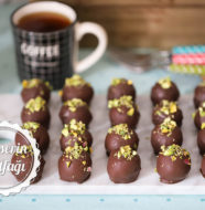- Çikolata kaplanan toplarınızı yağlı kağıt serilmiş bir tepsiye dizin,