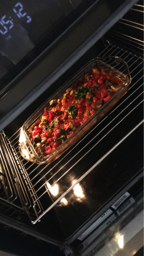 Fırında pişen patlıcanın en büyük eksisi pişme süresi sonunda formunu kaybetmesi ve renginin iştah kapatacak şekilde kararmasıdır. Bunun önüne geçmek için fırın ısısını yüksek tutarak patlıcanların kısa sürede pişmesini sağladım. Bu şekilde patlıcanlar suyunu salıp yayılamadan ve renk değişimi rahatsız edici boyuta ulaşmadan pişiyor.