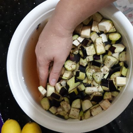 - Patlıcanları alaca soyup küp küp doğrayın,