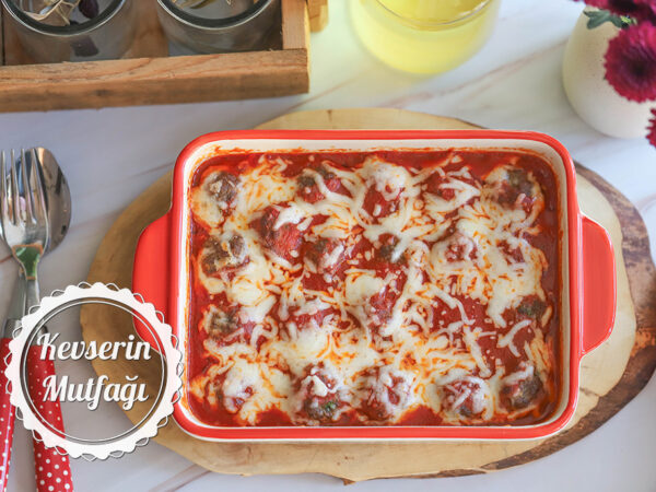 Tek kelime ile muhteşem bir tarifim var bugün. Biz ailecek bayılıyoruz kendisine, sizin de seveceğinizden eminim. Köfte zaten vazgeçilmez lezzetlerimizden biridir malum. Bir de üzerine harika bir domates sos ve fırında erimiş kaşar eklenince lezzetini varın siz düşünün artık.