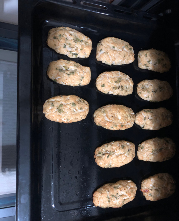 - Karışımdan istediğiniz boyutta kroketler yapıp yağlı kağıt serilmiş fırın tepsisine dizin,