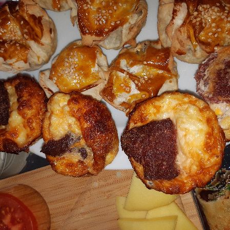 - Her birinin üzerine ikişer dilim sucuk yerleştirin,