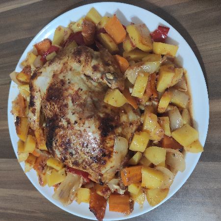 Patateslerin hakkını da yemek istemiyorum. Onların da çok lezzetli olduğunu belirtmeden duramayacağım. Daha geniş bir fırın kabında patates sayısını arttırarak pişirebilirsiniz yemeği. Kapaklı fırın kabınız yoksa eğer üzerini tavuğa değmeyecek şekilde alüminyum folyoyla sıkıca örtmeyi deneyebilirsiniz.