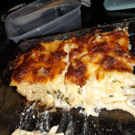 - Makarnaları süzün ve dibini ve kenarlarını yağladığınız 21*21 cm ölçülerinde bir fırın tepsisine boşaltın,