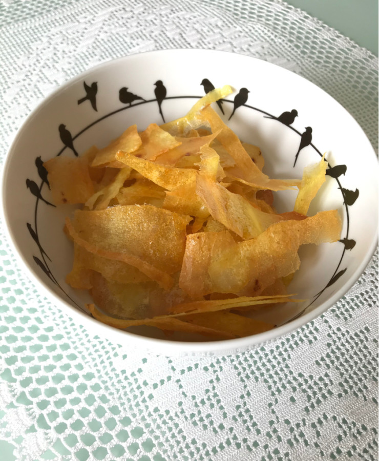 Patates cipsini sevmeyen kimse yoktur sanırım. Ola ki siz sevmiyorsunuz evde seven birileri mutlaka vardır. Bu tarifleri cips seven ev ahalisine küçük bir sürpriz yapabilirsiniz. Bildiğiniz hazır cips çıtırlığında ama daha az yağlı oluyorlar. Bir farkı da hazır cipsler gibi tatlı değil, olması gerektiği gibi tuzlu olmaları. Son dönemde birçok cipsin, özellikle patatesli olanların gittikçe şekerli bir tada sahip olmaya başladığını farketmişsinizdir sanıyorum, sanmaktan çok umuyorum aslında. Şekerin bağımlılık yapıcı özelliğini mi kullanmaya çalışıyorlar yoksa artık damaklarımız şekere iyice alıştığı için yapılan tüketici deneyleri bu tadın satışlara daha olumlu yansıyacağını mı gösteriyor bilmiyorum. Ama artık patates cipsleri tuzlu değil şekerli. Çok cips yediğimden değil ama çocukların ellerinde görünce üzülüyorum açıkçası.