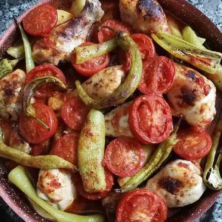 - Domates ve biberleri üzerine dizip tekrar fırına verin,
