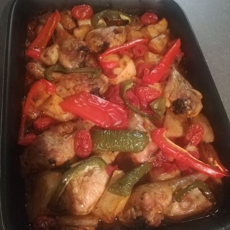 - 27*40 cm'lik bir fırın kabına dilimlenmiş patatesleri ve yıkadığınız tavuk bagetleri alın,
