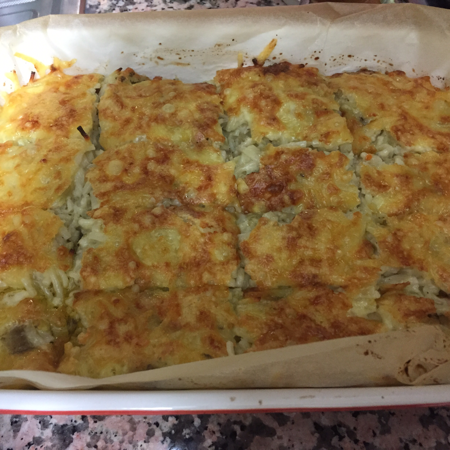 - 170 derecede önceden ısıtılmış fırında üzeri istediğiniz miktarda kızarana kadar pişirin.