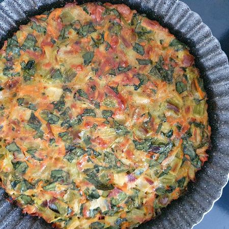 - Sebzeleri ve kaşarı hamur karışımına ekleyip karıştırın,