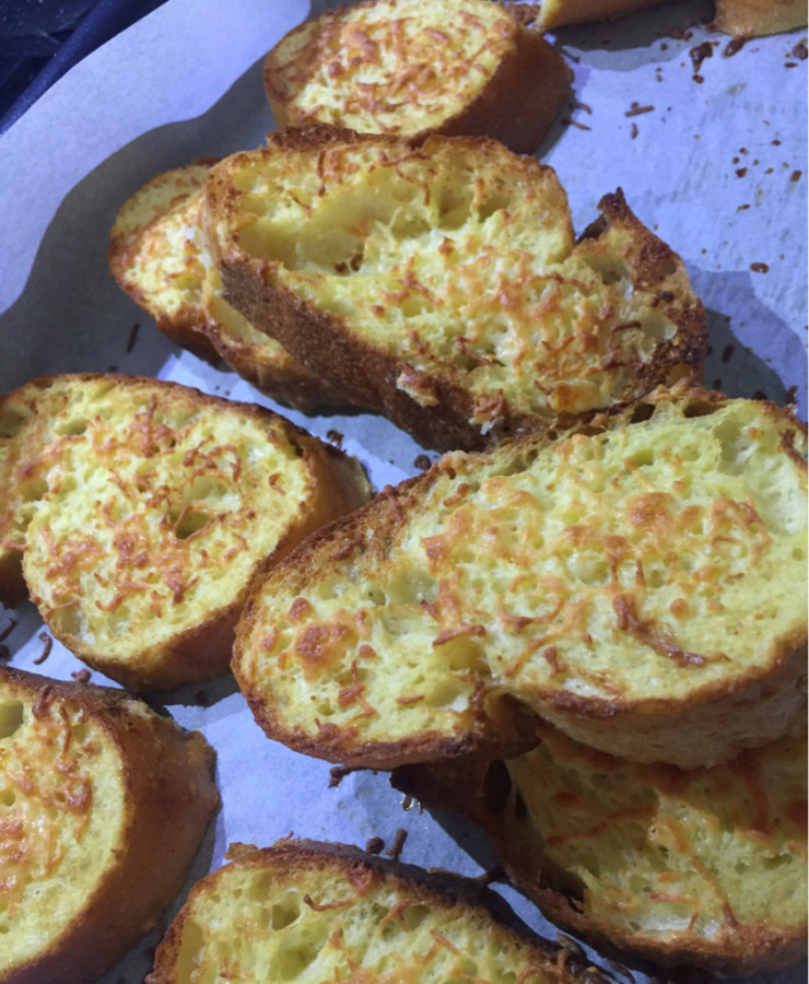 Tereyağlının yeri elbette ayrı, arada bir yapılır. Ama sırf yağlı olduğu için yumurtalı ekmekten vazgeçmemek için bu fırın formülü harika. Ben hem daha iyi kızarsın hem de lezzeti artsın diye bir miktar kaşar rendesi de serptim üzerlerine, çok yakıştı.
